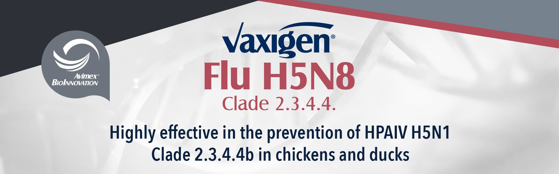 Thanks to the support of our clients, we have been providing solutions to relevant animal health problems in the poultry, swine, cattle, and aquaculture industries for more than 7 decades, with very successful sales in Mexico and in more than 30 countries around the world. With the bio-innovation in mind, we have developed and introduced to the Mexican and international markets our poultry and swine line of vectorized vaccines called Vaxigen®, that satisfy specific, and priority needs of our customers in their animal health programs. When you think on your animals’ health and performance, the success and competitiveness of your company, think on Avimex®, because in Avimex® ...We protect what you produce!